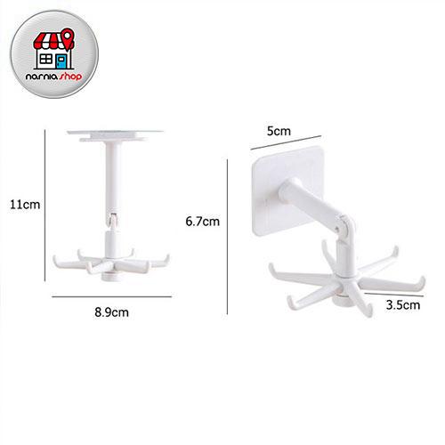 این محصول از جنس پلاستیک با کیفیت تهیه شده است. برای نصب آن باید آن را توسط چسب دو طرفه ای که زیر آن قرار دارد آویز را به دیوار بچسبانید. یک بازوی آن کاملا ثابت است و بازوی دیگر قابلیت چرخش 180 درجه ای دارد که برحسب نیازتان می توانید آن را خم کنید یا صاف نگهدارید. انتهای آن هم آویزی با 6 قلاب برای قرار دادن وسایل مختلف دارد که توانایی چرخش 360 درجه ای برای دسترسی راحت به وسایل آویزان شده دارد. این محصول در دو رنگ سفید و مشکی قابل عرضه می باشد. به دلیل کاربرد فراوان در هر بسته بندی دو عدد آویز قرار دارد که از آن می توانید برای آویزان کردن وسایل مختلف استفاده کنید.