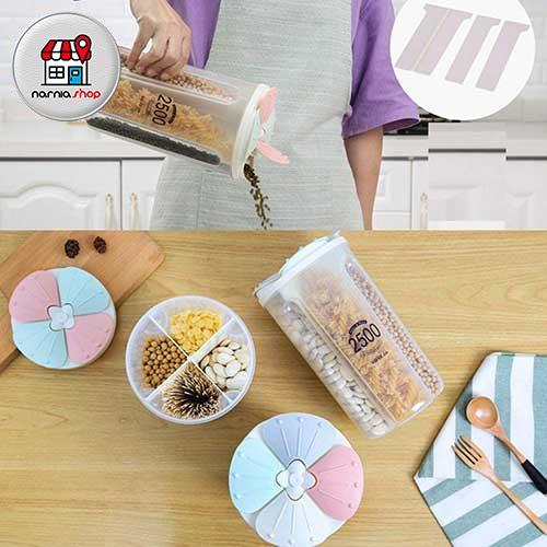 جنس:پلاستیک, مدل:استوانه ای, حجم:2.5 لیتر, تعداد خانه:3 عدد, سایر توضیحات:مناسب برای نگهداری انواع چای، حبوبات، خشکبار، شکلات و … قابل استفاده در منزل، رستوران، کافی شاپ و …