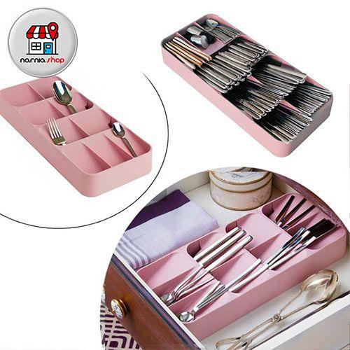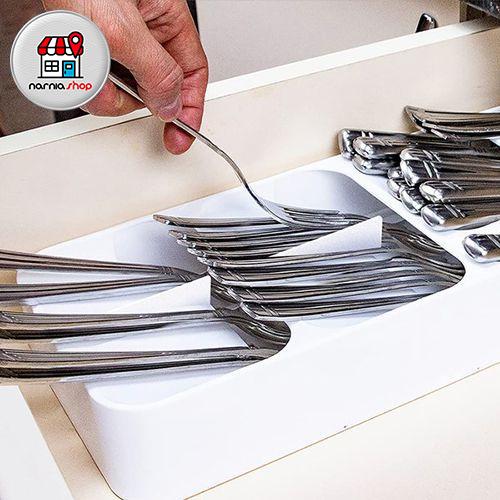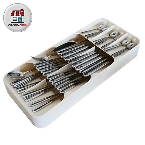 جنس:پلاستیک, ابعاد:5.2×16.5×38.5 سانتی متر, سایر توضیحات:وجود شیب داخلی محفظه ها برای افزایش ظرفیت و همچنین دسترسی آسان عدم امکان سر خوردن قاشق و چنگال ها به سمت داخل صرفه جویی در فضای داخل کشو و کابینت با ایجاد قابلیت استفاده حداکثری از فضا قابلیت شست و شو و تمیز کردن آسان دارای 6 محفظه مناسب برای جای دادن قاشق ، چنگال و کارد دارای 3 محفظه مناسب برای قرار دادن ابزار کوچک نظیر قاشق چای خوری ، چنگال میوه خوری و …