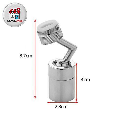 جنس:استیل, ابعاد:2.8×8.7 سانتی متر, قابلیت حرکت در زاویه:720 درجه, سایر توضیحات:صرفه جویی در مصرف آب حرکت در جهات مختلف سهولت در نصب و استفاده کاهش محدودیت در تنظیم زاویه خروجی آب مناسب جهت اتصال به دهانه شیرهای آب با قطر 23.5 تا 24 میلی متر * محصول فوق مناسب جهت اتصال به شیرهایی است که قابلیت اتصال سری از نوع نری دارند . در صورتی که شیر آب شما از نوع مادگی می باشد می بایست برای اتصال سری از رابط اتصال (تهیه توسط خریدار) استفاده نمایید . مناسب جهت استفاده برای شیر آب سینک و روشویی