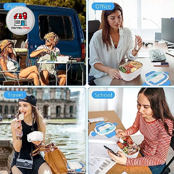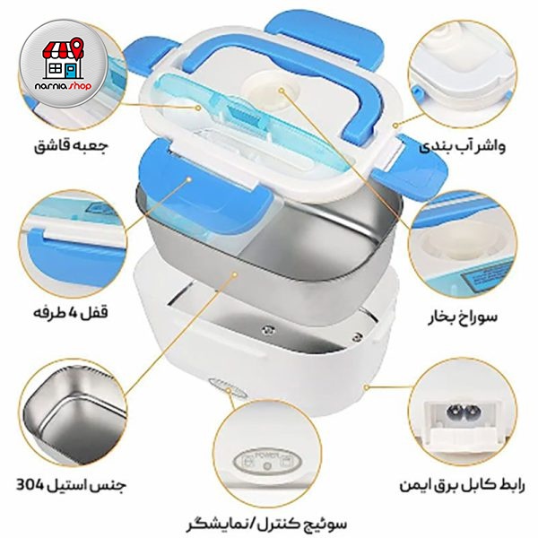 جنس:پلاستیک ، داخل استیل, ابعاد:23×16×10 سانتی متر, سایر اقلام همراه محصول:دارای ظرف کوچک خورشت یا سالاد قاشق همراه