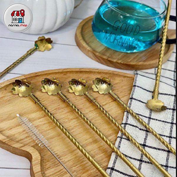 قاشق نی دار مارپیچ طلایی